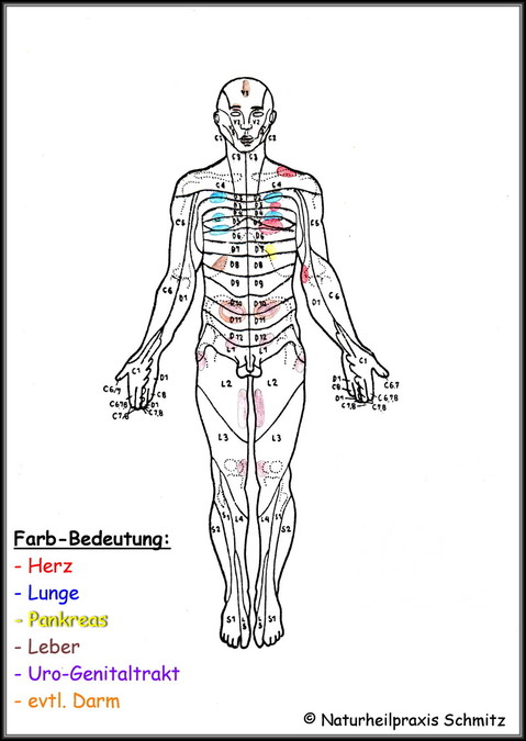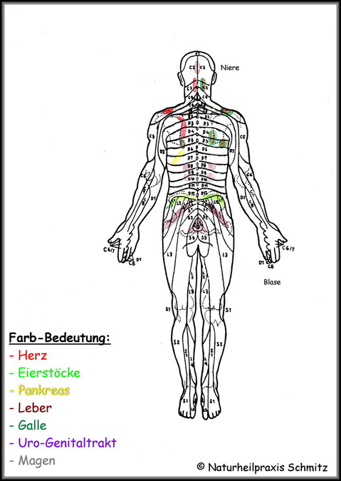 Ist ein Organ erkrankt, so kann es durch die Reflexbahnen zu einer Druckempfindlichkeit, einem Schmerz oder einer Rötung auf den entsprechenden Hautarealen kommen.